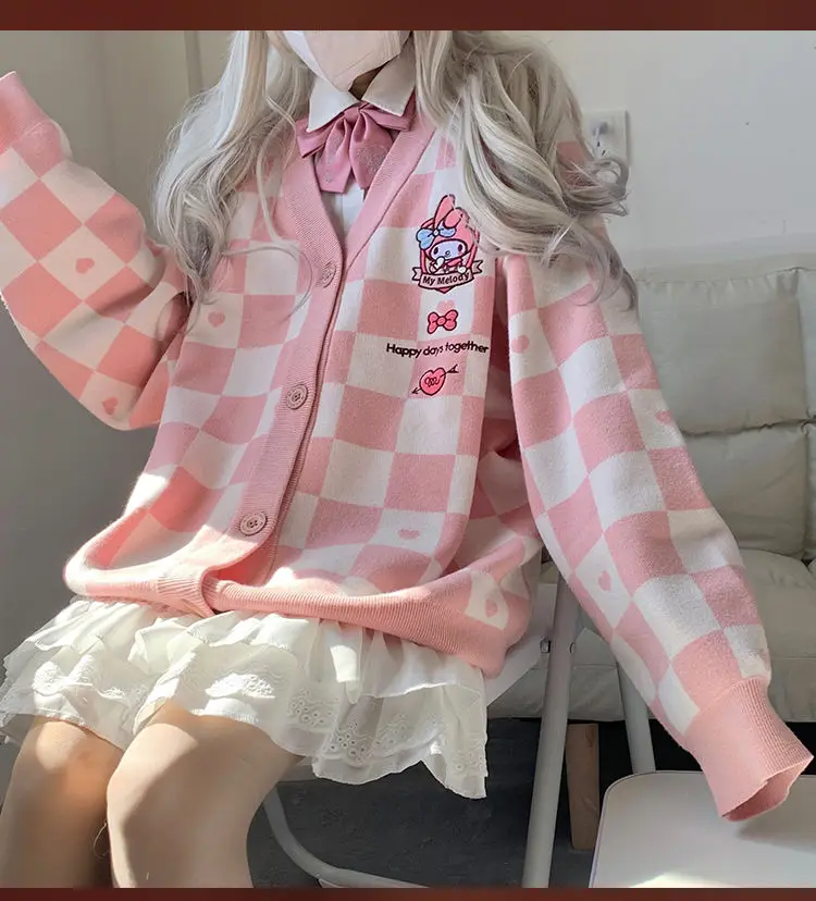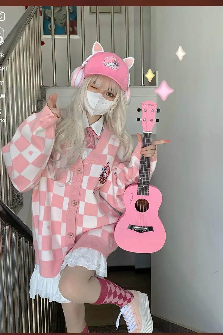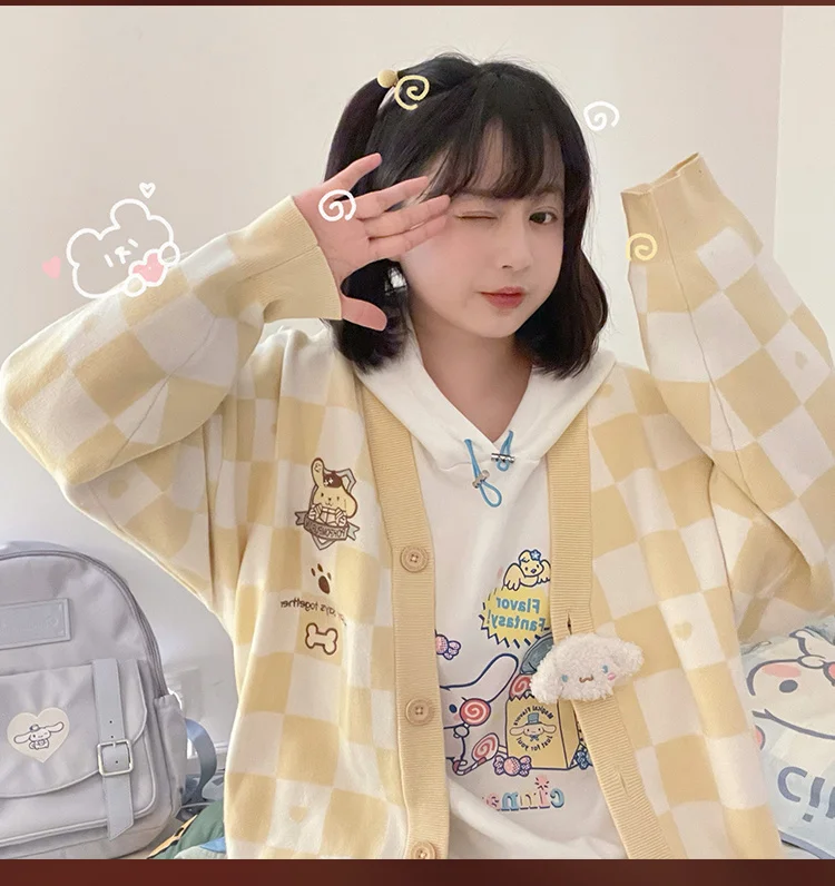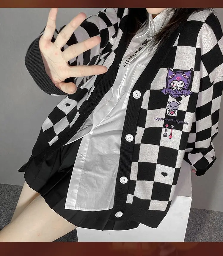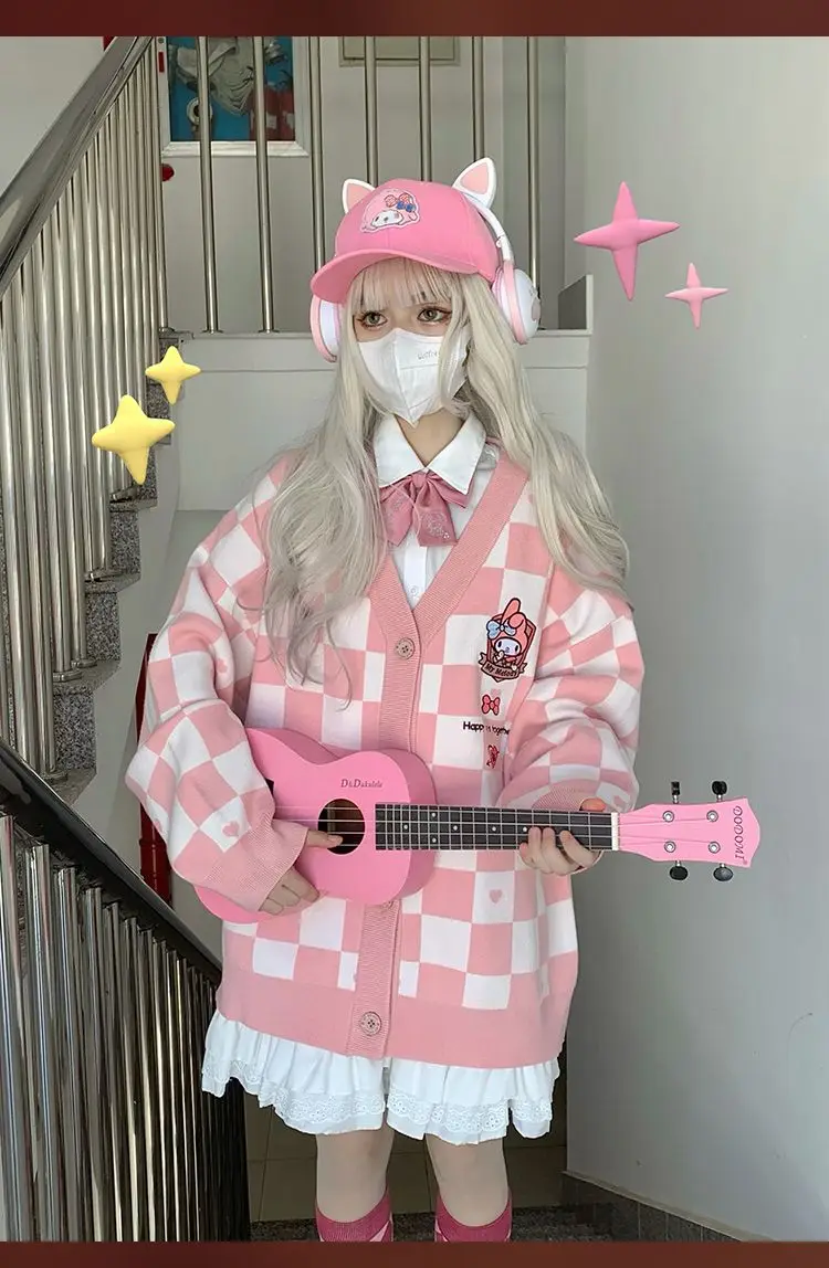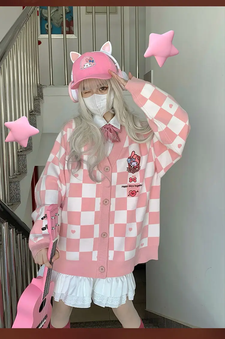 New Sanrio My Melody Kuromi Jacket Cardigan Sweater Cartoon Women's Knitted Swea