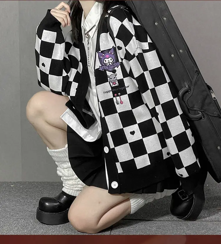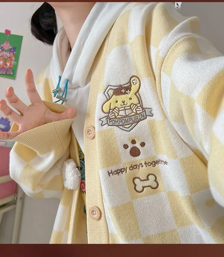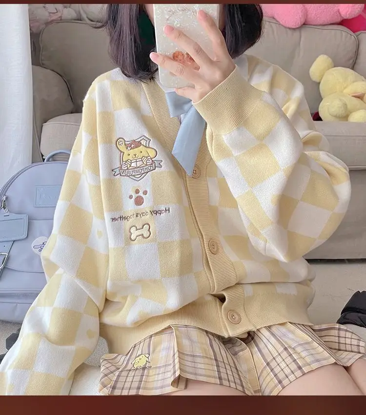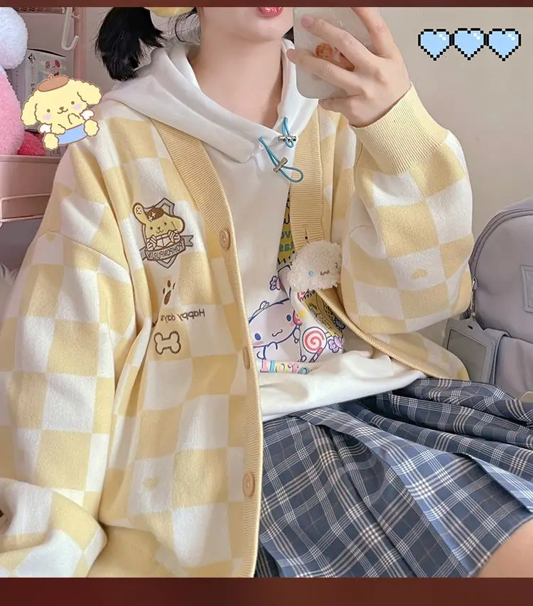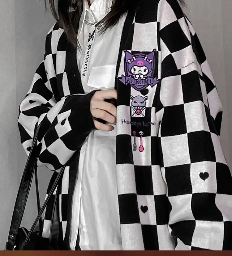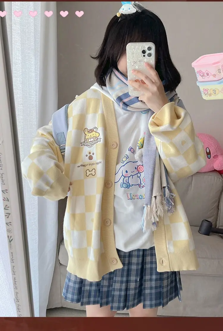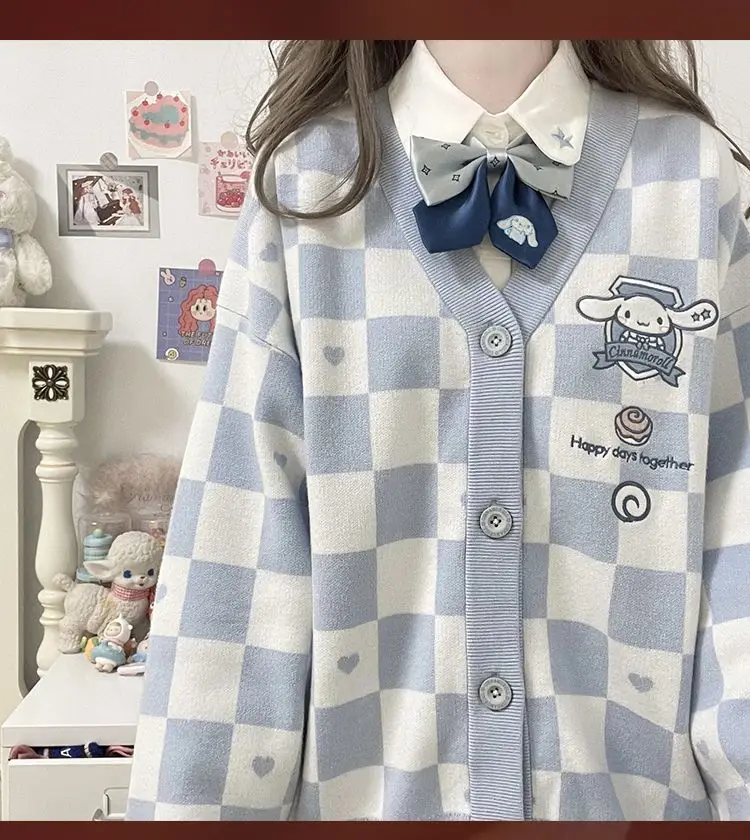 New Sanrio My Melody Kuromi Jacket Cardigan Sweater Cartoon Women's Knitted Swea