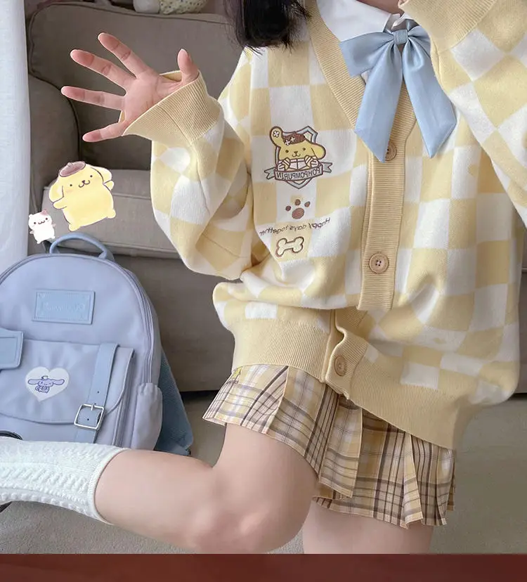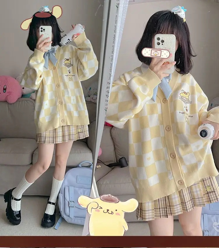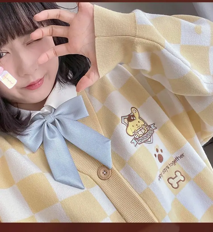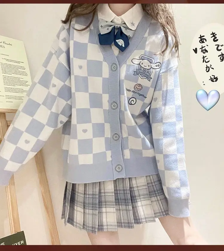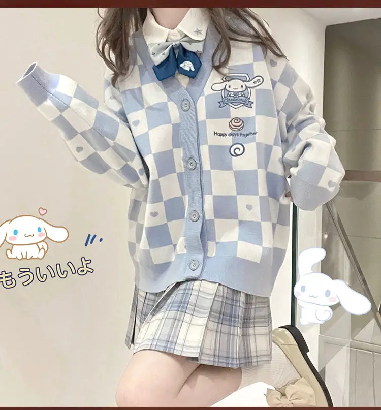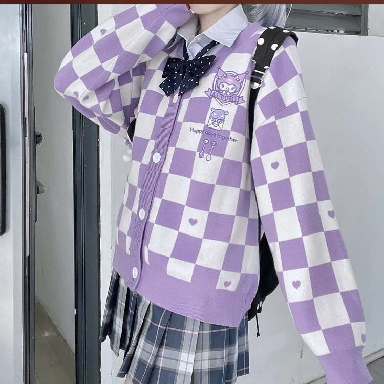 New Sanrio My Melody Kuromi Jacket Cardigan Sweater Cartoon Women's Knitted Sweater Uniform Top Versatile Jk Cute Jacket Women